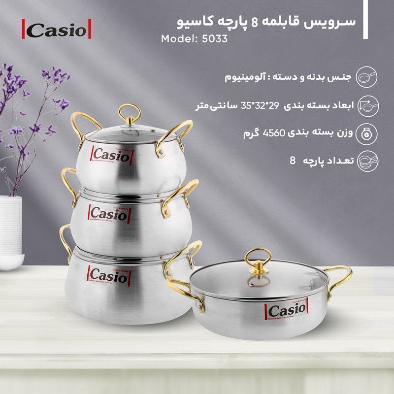 سرویس قابلمه کاسیو دسته طلایی درب شیشه