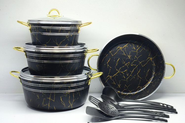 سرویس قابلمه ۷+۳ پارچه تفلون آرسکا دسته طلایی